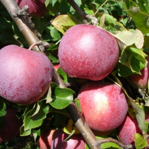 Fructele sunt mijlocii, de culoare rosu-portocaliu pe partea umbrita si rosu-visiniu lucios pe cea insorita, ...